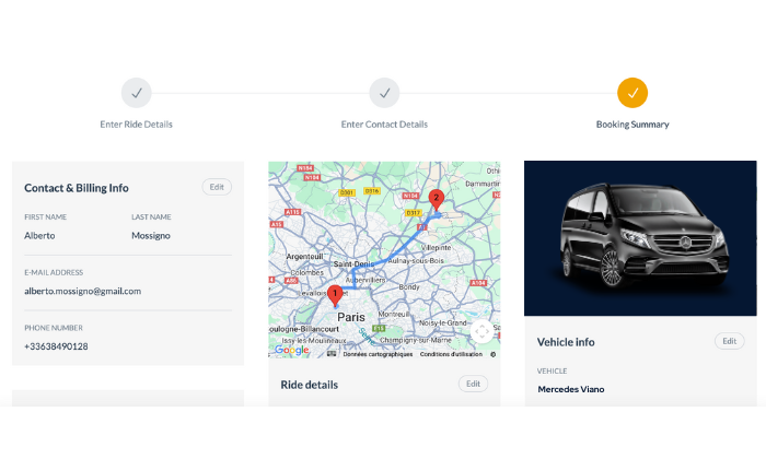 Reserve em linha com apenas alguns cliques 24 horas antes da sua partida: escolha o seu itinerário, o seu veículo e confirme. Receberá uma confirmação imediata. A nossa equipa está disponível para qualquer pedido específico.